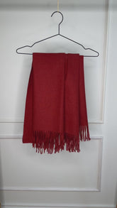 Dette sjal kommer i en smuk rødlig farve, der udstråler elegance og passer perfekt til både lyse og mørke outfits. Farven giver et tidløst udtryk, mens frynserne tilføjer et klassisk og feminint touch.
